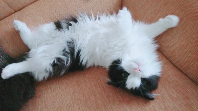 | 特徴(性格など) | 色はブラックホワイトです。 性格は1人でのんびりするのが好きです。 ご飯が好きすぎるので、肥満に注意が必要かなと思います(^_^;) 運動量は少ない方なので、猫じゃらし等で遊びながら運動させてあげて下さい。 |