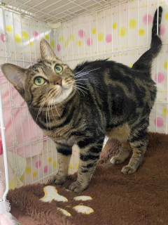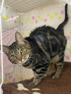 | 特徴(性格など) | ☆★☆★現在お見合い予定がございます☆★☆★ 仮名を『ぼたん』と言います。 きじとらの女の子です。 育てていた飼い主さんが亡くなられて、会社室内に残されていたところを保護されました。 会社内隅々まで探したところ、息を潜めて震えていました。 黒が濃い目のきじとらで、お腹には渦巻き模様があるのが特徴的です。 骨格も太くしっかりしていて、ずんぐりむっくりした体格です。 大きくて丸いモフ猫が好きな方には、見ているだけで癒されることでしょう。 愛情を注がれていたことは、ぼたんを見ればわかります。 ぼたんは人間が大好きで、そして他猫にも友好的です。 お留守番もできる性格もわかっているおとな猫ですので、共働きのご家庭や猫を初めて家族に迎える方でも、一緒に暮らしやすい仔だと思います。 ナデナデも大好きで直ぐに、嬉しっぽのご機嫌になっちゃいます。 人見知りや場所見知りが最初はあるかもしれませんが、ひとたび安心がわかれば、かなりの甘えん坊になると思います。 可愛いぼたんに是非ぜひ会いに来てくださいね!! 仲良しな仔と二頭一緒のお迎えも、大歓迎です。 【医療処置情報】これから実施のも含まれます *健康チェック *3種混合ワクチン接種 *ウイルス検査実施(FIV.FeLV共に陰性) *検便実施 *駆虫薬投与(レボリューション、ドロンタール) *マイクロチップ装着 *不妊・去勢手術 |