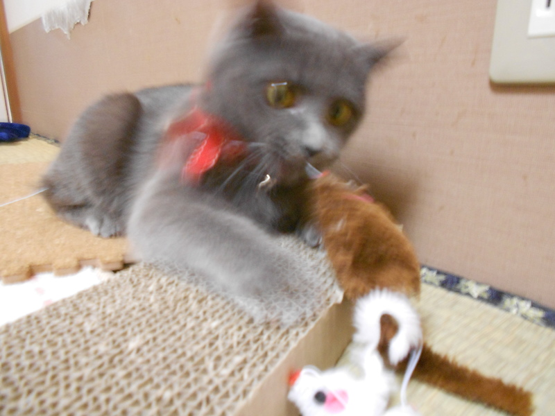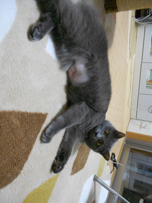 | 特徴(性格など) | 綺麗なグレーです。柔らかい毛並みですがアンダーコートは少なめ。獣医さんからは顔はジャパニーズだね、と言われました。尻尾は短いうさぎちゃんしっぽ.。o○ 運動神経抜群!お友達がいないので遊び足りないのか元気が有り余っています。今のところ甘えるより遊びたいお年頃♡人に対しても物おじせず、というより中心にいたいタイプかも。譲らないところは絶対に譲らない!ふかふかのベッドは絶対に使わず、結局使い古しのバスタオルに変わりました(泣笑) |