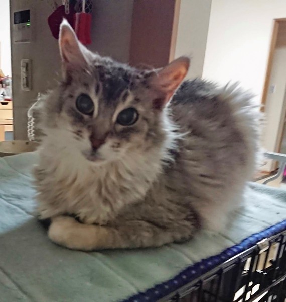 | 特徴(性格など) | メイさん メス(避妊済みと思われます。) 推定5~7歳位 サバトラ長毛 エイズ・白血病ウイルス検査陰性 ワクチン接種済み ノミダニ駆除済み 医療費(2/7現在)0円 飼育放棄でセンターに収容されました。 ツンデレの性格です。 自分から甘えてきすが、しつこくされるのは嫌いなようです。 飼われていたので、人には慣れています。 家族としてお迎え下さるお家とのご縁をお待ちしています。 |
