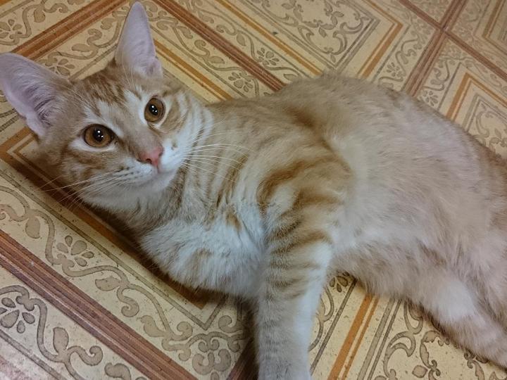 | 特徴(性格など) | 落ち着いたおとなしい猫です 1人で玉のようなものを転がして遊んでいることもよくあります あまり自分から甘えてくるタイプではなかったのですが最近はかなり甘えてくるようになりました 高いところが好きでよく上がっています 他のオス兄弟に比べて今のところスリムでしなやかな感じです 元気に兄弟と遊んでますので健康も問題無さそうです トイレはしつけ済みです 外に出たがって鳴くことがあるので近いうちに去勢が必要だと思います スプレー行動はまだありません |