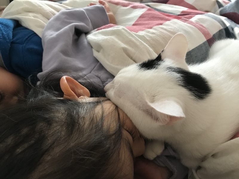 | 特徴(性格など) | 通称 くろちゃん (色)ハチワレ黒と白のツートン♂ (性格)慣れるまでは警戒心ちょっと有。 慣れればかなりの甘えん坊さん。 通称 しろちゃん (色)白の黒しっぽ♂ (性格)子供が騒いでもすり寄ってくる甘えん坊さん。 人のこと大好きな人懐っこい子。 2匹ともすり寄ってきて膝の上に乗るのが大好き |