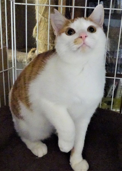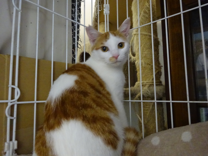 | 特徴(性格など) | 仮名: マレくん(オス) 毛色: 白が多い茶白、尻尾長い 性格: すばりビビリです。ケージから出ると捕まりませんが、自分からケージに入ります。 ケージの中では、触らせてくれるし、ブラッシングもOK。抱っこは嫌いみたいですが、慣れていないだけのように思います。 普段はとても大人しく、じゃらし遊びも好きなのに、控えめに順番待ちします。 先頭に立つ性格でなく、他猫ともうまく付き合えています。 兄妹のマーシュちゃんと同じケージにいて仲良しですから、2匹一緒のご縁があると嬉しいですが、1匹でも大丈夫です。 猫初心者の方にはちょっと難しい子なので、猫飼育経験者の方が良いと思います。 |