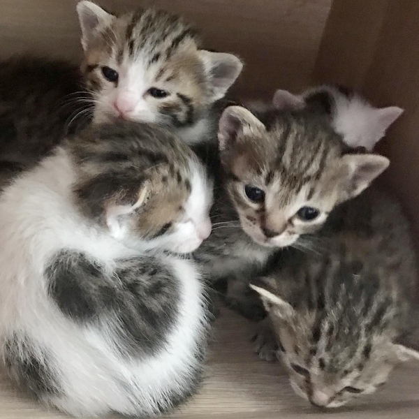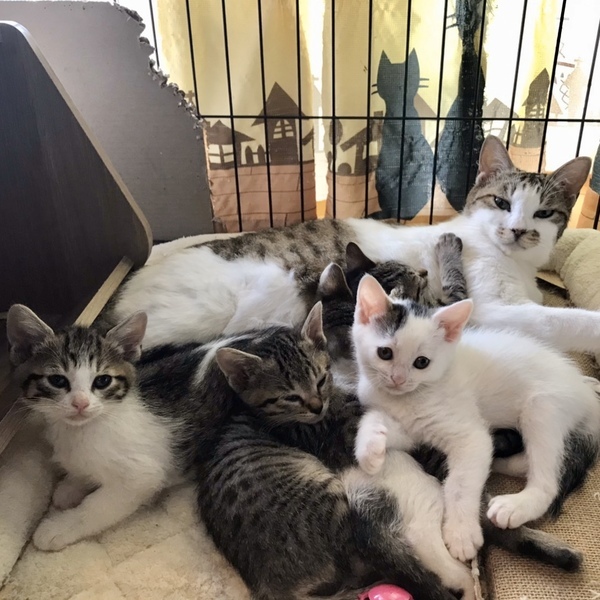 | 特徴(性格など) | まみちゃん キジ白メス3歳くらい 小柄ですが6匹も産み頑張って育てています。 住宅街のアパートの階段の下に段ボールが置かれてそこで他の猫と団子になって暖をとっていました。 今までは出産の時にはどこか違う場所で子育てしていたようですが産んで2ヵ月くらいすると風邪ひいた子猫を1匹とか連れてきてたのだそうです。 今回子猫が6匹ですので2匹ずつペアで1組はまみちゃんと一緒にご縁をいただければと思っています。すでに子猫2匹ペアでご希望の方はほぼ内定しており、今は母猫と3匹迎えてくださる方のみの募集です。 ママと一緒であれば早くお迎えいただくことも可能かと思います。また親兄妹であればずっと仲良く、2匹も3匹も必要なスペースなどは変わりません。 最新の動画はこちら (預かりさんがFacebookにアップしてくれています) https://www.facebook.com/maruyama.akiyo/videos/3138354636227583/?d=n ※ 名前はドリンクシリーズです 母猫まみちゃん3歳くらい 穏やかなキジ白です。子育て中なので気が立ってしまう時があります。でも穏やかで寛容な、根本に人がずっとお世話してきたので人を信用してくれている子です。 ※3/25→4/5の体重です 白キジ:ポン(ジュース)ちゃん。女の子。406g→615g キジ白:ソイ(豆乳)ちゃん、男の子。534g→811g キジ白:ラテちゃん背中にハート模様がある男の子493g→698g おっぱい命(最近離乳食も食べてます) 麦わら:麦ちゃんメス432g→640g キジトラ:ココアちゃんメス407g→630g キジトラ:モカちゃんメス348g→580g ※性別は間違っている可能性があります 組み合わせに関しては相性や他の希望者様のご希望を調整させてください。 健康状態 まみちゃんは少しくしゃみや鼻詰まりがありますが元気です ウイルス検査(エイズ・白血病)やワクチン、避妊手術は子猫が離乳が進んだら行う予定です。(4/12以降になります) 以前産んだ子猫はウイルス検査は陰性だったそうです。 駆虫 検便 ※4/12以降にワクチンとまみちゃんのウイルス検査や避妊手術を予定しています |