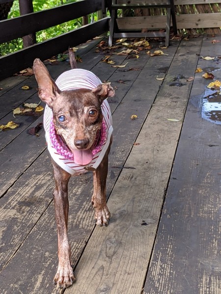| 特徴(性格など) | 『20SR-20』ミニピン♀セサミ ◆預かりブログ◆ ※ ご応募前に必ずお読みください。 2020.5.16~ https://profile.ameba.jp/ameba/guritogura22 2020.4.27~5.16 https://ameblo.jp/coconeel-azu/ ◆特徴◆ 【保護経緯】繁殖屋放棄のためレスキュー 【保護日】2020.4.27 【仮名前】セサミ 【性別】♀ 【犬種】 ミニチュアピンシャー 【年齢】 推定7歳~ 【毛色】 チョコレート&タン 【体重】 7.4キロ ◆性格・日常◆ 【性格】 まだ家庭での生活に慣れず怖がりですが、慣れると甘えてきてくれます。 【トイレ】トイレシート認識あります。 【お散歩】 大きな音に怖がることはありますが上手に歩けます。 【留守番】ケージでお留守番出来ます。 【就寝時】ケージで就寝出来ます。 【お手入れ】シャンプー、耳掃除、爪切り、肛門腺絞り等大人しく出来ます。 【犬との関係】攻撃性ありません。 【猫との関係】攻撃性ありません。 【人との関係】攻撃性なし。慣れた人には甘えん坊です。 【その他】保護時より脱毛箇所あり経過観察中。 ◆これまでに行った医療◆ 【混合ワクチン】 済み 【血液検査】 問題なし 【体内寄生虫】 陰性(駆虫薬投与済み) 【耳ダニ検査】 陰性 【避妊去勢手術】 済み 【スケーリング】 済み(抜歯) 【マイクロチップ】挿入済み 【体外寄生虫】 アドボケート投薬済み 【その他】 保護時より脱毛箇所あり経過観察中。 右目、保護以前に負った怪我により色素沈着あり。日常生活に支障ありません。(視力あり) ◆今後行う予定の医療◆ なし ◆必要な継続医療◆ なし ◆預かり場所◆ 神奈川県横浜市 ◆譲渡範囲◆ 神奈川県、東京都、千葉県、埼玉県、静岡県 |