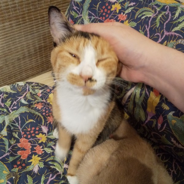 | 特徴(性格など) | 仮名:かのこ 毛色:三毛 瞳の色:茶 尻尾:長くてまっすぐ 性格・特徴:茶・黒・白の分量が均等で、日本画に出てきそうな、とても綺麗な三毛猫です。 スラリとしていてスタイルも抜群。 臆病ですが、最初から威嚇やひっかきは一切ありません。 最初は触られると腰が引けてしまう状態が2か月以上続いていましたが、だんだん撫でると喜んで手にほっぺをスリスリしてくれるようになり、今では初対面の人にでも喜んで撫でられています。 すっかり人見知りを克服できました。 爪切りも問題なくできます。 システムトイレのしつけ済み。 左耳に桜カットあり。 これまで辛い思いをしてきた分、愛情たっぷりに育ててくれる方を希望します。 里親さん宅に行っても環境に慣れるまで時間がかかるかもしれないため、仲がいい兄妹と2匹で迎えていただけるとありがたいです。 |