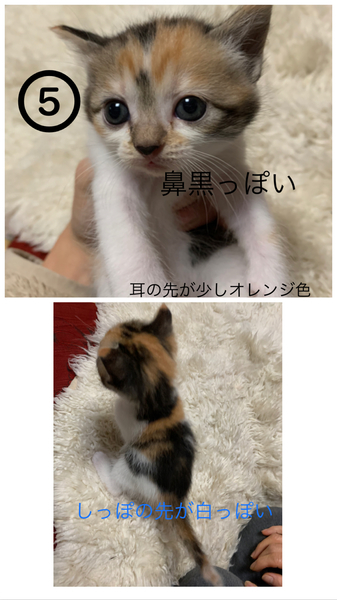 | 特徴(性格など) | 三毛猫5匹 みんな結構似てます。 |