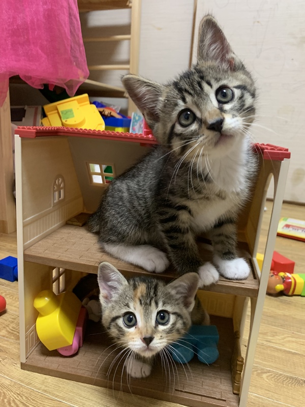 | 里親募集する理由 | 近所の野良が産みました。個人的にTNRしてますが、どうしても捕まらなかったメス猫が産みました。今回、子ネコを保護したと同時に母猫も捕まりましたのでもう増えることはないですが、この子たちは人馴れもし未来があるので里親募集致しました。 家には先住猫2匹がおり、どちらもストレスで毎日シャーシャー言っているのでどなたか里親様になって頂ければと思います。 子猫の方は構ってほしいのか先住猫に近づきますので、相性次第ですが先住猫いる方でも大丈夫だと思います。 |