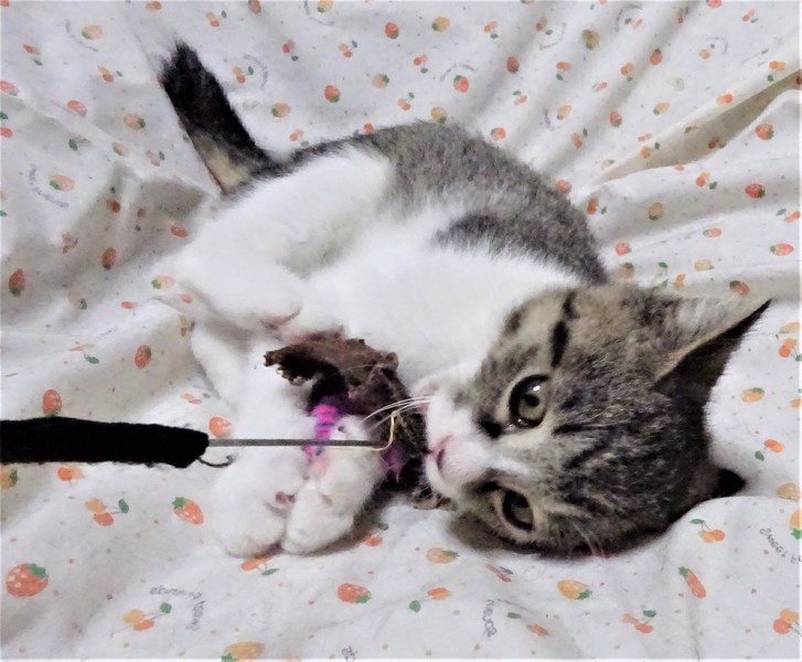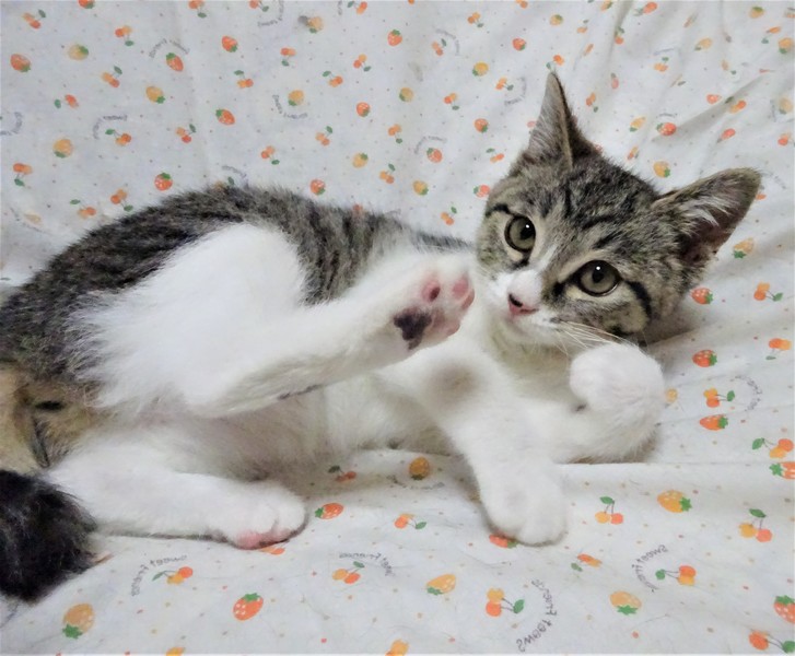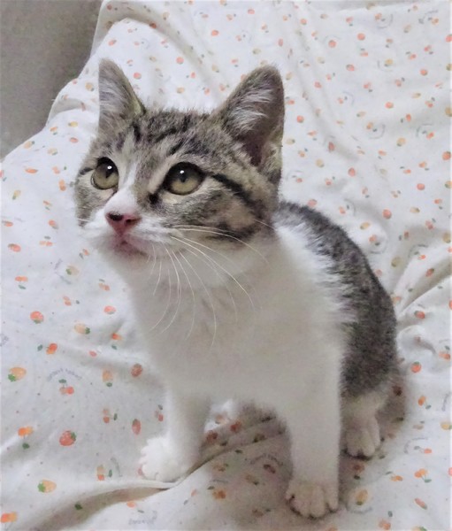 | 特徴(性格など) | 仮名: りっちゃん(メス) 毛色: キジ白 性格: 怖がりの所はありますので、初対面では威嚇するかもしれませんが、保護して日が浅いこともあり、これから人馴れしていくと思います。 今は、保護から2週間で触られるの大好き、一緒に遊んだり、抱っこしたり出来、ビックリして威嚇することがあっても攻撃性はありません。 甘えん坊になる気がします。 まだ3か月ですが、ある程度の留守番は出来ますので、パート位のお勤めでしたら大丈夫です。 まだ小さいので留守の間はケージ生活をさせると安心だと思います。 まだ他の猫との付き合いはどうなのかが良くわかりませんが、上手に対面させれば大丈夫だと思います。 |