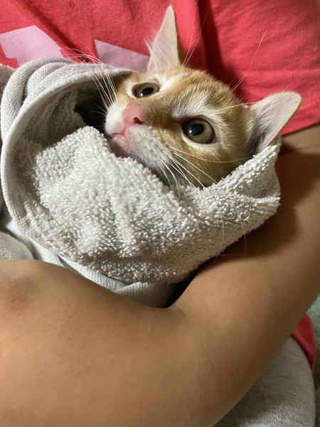 | 特徴(性格など) | チャトラの男の子です。 甘えたで、抱っこも今のところさせてくれます。 エイズ、白血病検査陰性。 |