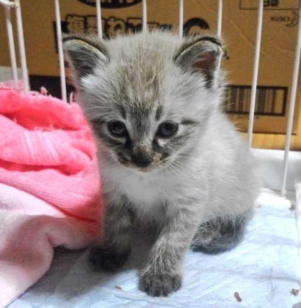 | 特徴(性格など) | シャム風で、毛は洋猫系のふわふわ。 目の色はまだ分かりませんが、水色になりそうな予感。 ほとんど人と接することがなかった子達ですが、保護して数日でお膝によじ登り、 みーみーとご飯の催促をするまでになっています。 好奇心旺盛、食欲旺盛、毎日元気いっぱいです。 この子は兄弟の中でも結構アグレッシブで、探検大好き。遊ぶの大好き。 ちょっぴりやんちゃな子に育ちそうです。 トイレも自力でできますし、食事は子猫用のウェットフードを食べられます。 ノミダニ駆除済み |