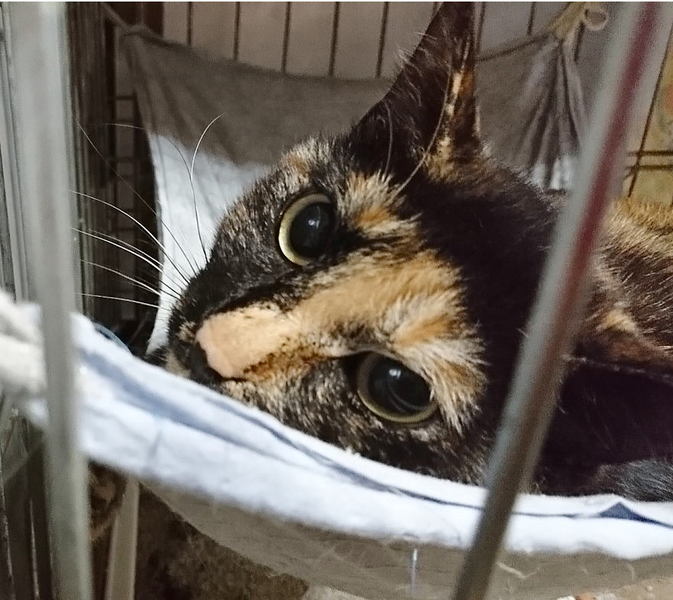 | 特徴(性格など) | サビ柄の女の子。 年齢は推定ですが、1歳1~2ヶ月くらい。 ちょっと怖がりで人見知りもするので慣れるまでに少し時間がかかるかもしれませんが、そのような場合でも長い目で見て接してくださる優しい里親さん探しています♪ |