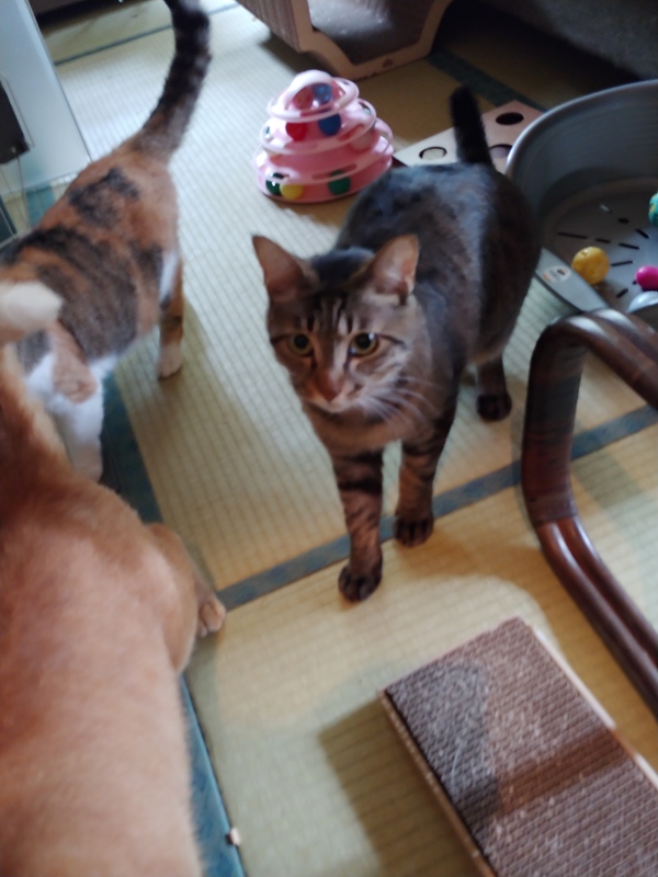 | 特徴(性格など) | キジトラと茶トラの兄弟。 我が家の庭に出現した生後2ヶ月位から5ヶ月間餌付けの末に母猫共々保護しましたので、健康には全く問題のない兄弟です。 ボス的存在のキジトラ「希一」 ヤンチャなのに小心者の「茶々丸」 よろしくお願いします。 |