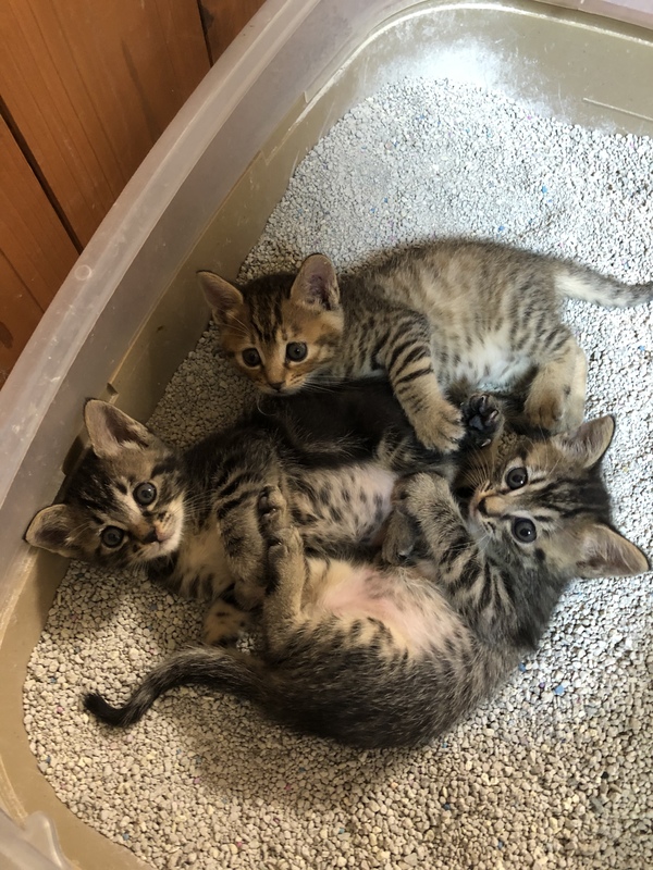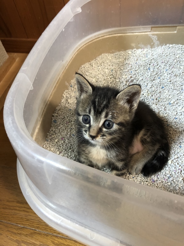 | 里親募集する理由 | 実家にごはんを食べにくる野良猫が産んだ子達です。お母さん猫は何回かチャレンジしていますがなかなか捕まらず未だ挑戦中です。ある日実家の玄関前のアスファルトに仔猫達を置いていきました。その後も何食わぬ顔でごはんを食べにくるものの仔猫達には無関心な為保護しました。保護時生後1週間ほどで目が開きかけ、体重は200gでした。現在は650gほどです。それまではちゃんと育てていたようでキレイでノミや寄生虫などもありませんでした。初乳もしっかり飲んでいたようで病気もなく今日までトラブルなく元気に成長中です。 | ||