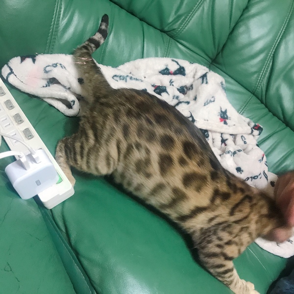 | 特徴(性格など) | ベンガル猫は、大人になるにつれ模様や色味が変わったりする場合があるみたいです。 半ロゼットやロゼットが所々にあり毛艶もいいです。 トイレも失敗も無くきちんと出来、 遊びも大好きで良く運動会もしています。 触っているとスリスリ喉をゴロゴロ鳴らし甘え上手で性格も可愛いらしいです。 |