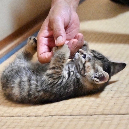 | 里親募集する理由 | とある会社の縁の下のような場所でママと一緒にいたところを保護しました。 交通量の激しいところで、えさ場も遠かったため、ママも一緒に保護して現在家猫修行中です。 |