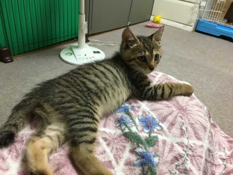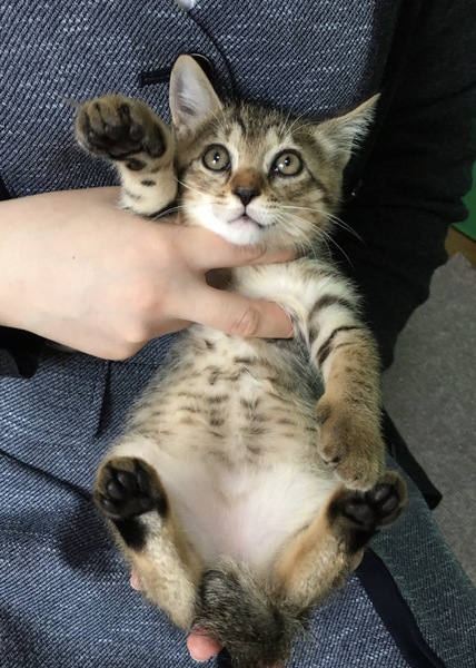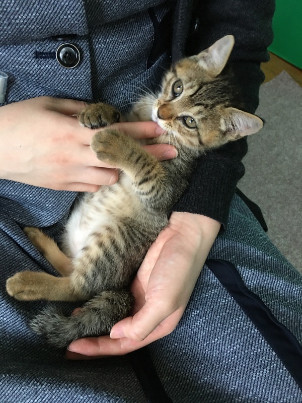 | 特徴(性格など) | 2ヶ月のオスのキジ猫です。 甘えん坊の懐っこい子です。 体重730g 人慣れしておりトイレの躾済みです。 |