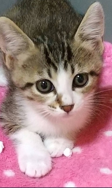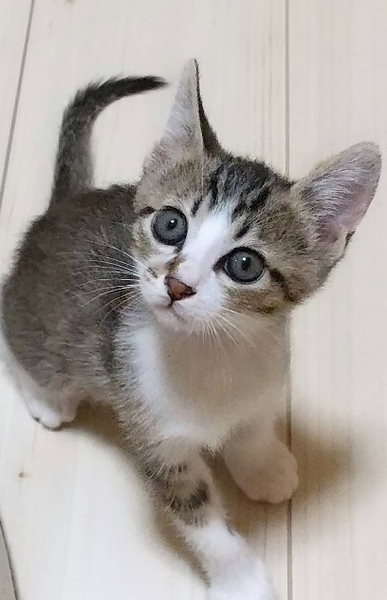 | 特徴(性格など) | 生後1.5ヶ月くらいのキジ白の男の子。元気です。 人にも猫にもなつこい子です。先住の保護猫たちとも仲良しなので、2頭めの子にもいいかもしれません。 名前を呼ぶと、走ってきます。^^ トイレ失敗なし。 近日中に検便・健康診断を受診する予定です。 |