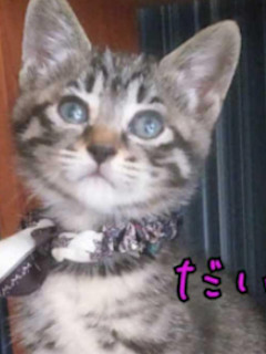 | 特徴(性格など) | ☆★☆★現在お見合い予定がございます☆★☆★ 仮名を『だいこく』といいます。 センターに収容されtました。 きじとらの女の仔です。 兄妹には『べんてん』と『びしゃも』がおります。 魅惑のどすこいボディーです。 ぽんぽこりんのお腹だけでなく、手足もがっしりしています。 性格は慎重派です。しっかり人も猫も見てから判断している感じです。 安心がわかり新しい環境や状況に慣れてしまえば、甘ったれのお膝猫さんです。 兄妹一緒のお迎えや、フレンドリーな先住猫さんのいらっしゃるご家族を希望しています。 トイレもバッチリでして、仔猫用ドライフードやウエットフードを食べています。 【医療処置情報】これから実施のも含まれます *健康チェック *3種混合ワクチン接種 (年1回定期的にしております。詳細はお見合い時にお知らせいたします) *ウイルス検査実施(FIV.FeLV共に陰性) *検便実施 *駆虫薬投与(レボリューション、ドロンタール) *マイクロチップ装着 *不妊・去勢手術 |