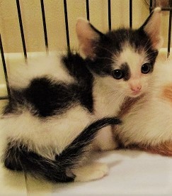 | 特徴(性格など) | 尻尾が長い。愛嬌のある子です。 人間にとっても人懐っこい子です。 他の猫たちとも仲良く遊んでいます。 未熟児状態で保護されましたが、今では、元気にしています。 体重370g。 保護当初は下痢・嘔吐で衰弱しておりましたが 抗生剤や 嘔吐止薬で回復しAd缶を食べ 元気になりました。 健康チェック(ノミ、ダニ、お腹の駆虫、 耳ダニ)などは済み です。 |