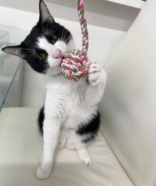 | 特徴(性格など) | ハチワレが美しい黒白猫さんです。 遊ぶのが大好きな甘えん坊な男の子です。 トイレなどもバッチリ出来ます! 去勢・ワクチン済み。 エイズ白血病陰性。 |