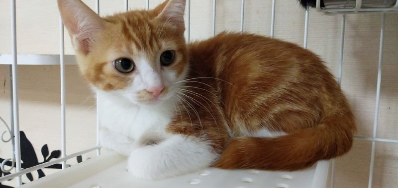 | 特徴(性格など) | 4匹兄妹の唯一のオス。 保護時より元気いっぱいの食いしん坊。妹たちをしっかり守るお兄ちゃん。 まだ警戒心もありますが、撫でられると気持ちよさそうにしてます。 健康状態良好 ノミダニ駆除、駆虫済 ワクチン1回目接種済 |