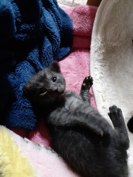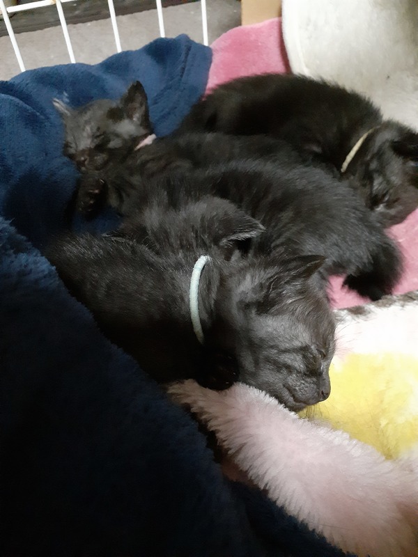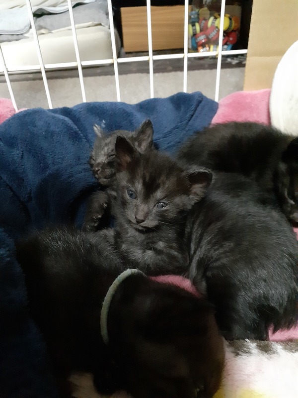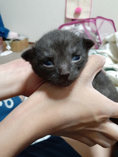 | 里親募集する理由 | 5月2日に盲目の黒猫(母猫)を保護。 病院で半年くらいの子猫で、下痢や鼻水の症状改善後に避妊手術をと予定していました。 日に日に大きくなるお腹… 病気かとも思いましたが、目が見えない不安からかネットから顔を出すだけで精一杯でエコーもとれず… 6月終わりに、押さえつけてエコーをとり妊娠が発覚。 7月4日明け方に4匹出産。 手助けが必要かもと言われていましたが、母猫が全てやり遂げました!! うちには先住猫もおり、全ての猫の飼育が難しいため、この子たちを幸せにしてくれる方を探しています! |