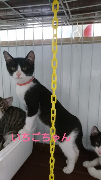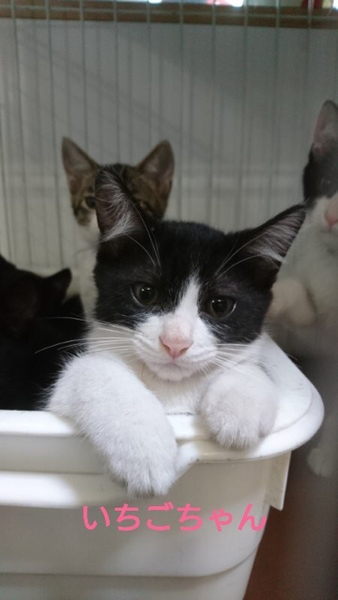 | 特徴(性格など) | 仮名「いちごちゃん」 ワクチン済み、駆虫済み、ウイルス検査白血病、エイズ共に陰性 黒白の女の子。 おてんばな女の子です。 まだ自分から人寄ってくる事はありませんが、家庭に入って馴れてきたらツンデレ女子になりそうな子です。 表情が豊かでマイペースな一面もあります。 とても面白みのあるタイプの子だと思います。 月齢的には1匹での譲渡も可能ですが、兄妹2匹での受け入れをしてもらえたらありがたいと思っています。 小学生以上でしたらお子さんのいるご家庭でも大丈夫だと思います。 C309309のパインくん C309310のライチくん C309314のりんごちゃん C309315のあんずちゃん C309316ぶどうちゃん と兄妹です。 |