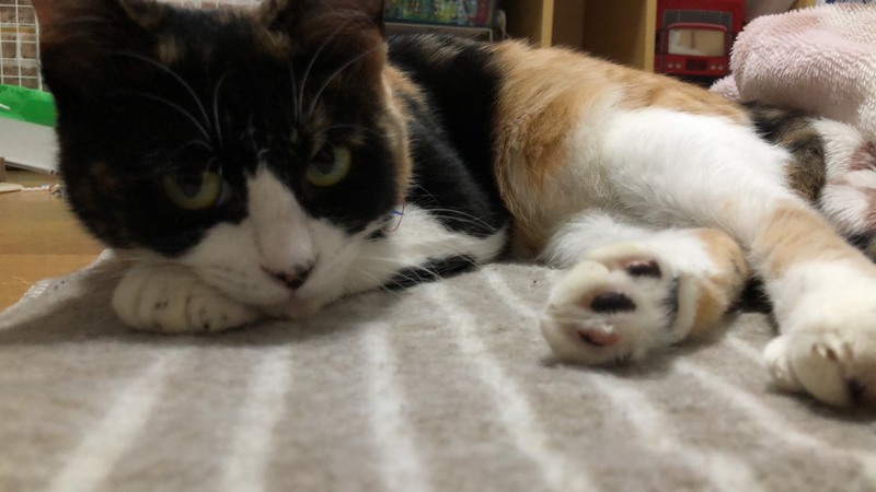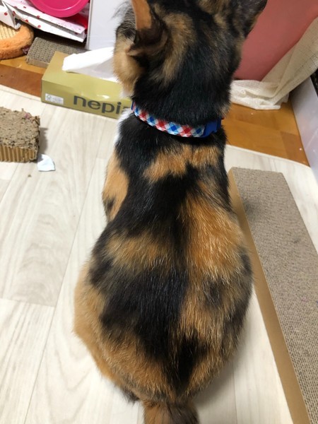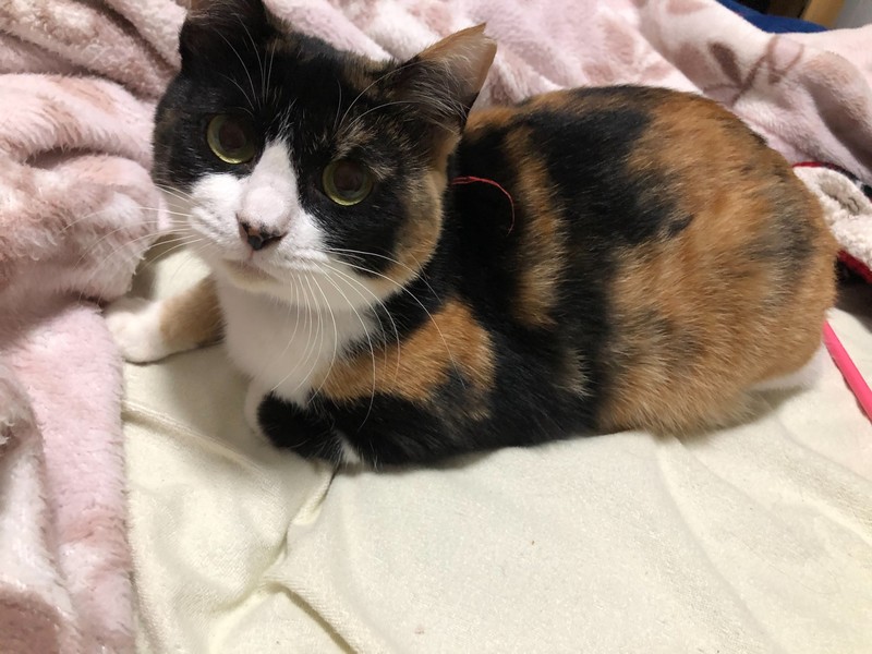 | 特徴(性格など) | 三毛。 段々 人との生活にも慣れ、フリーでも落ち着いた生活が出来て来ました。 遊び好きで活発な女の子ですが、抱っこ好きでは有りません。 |