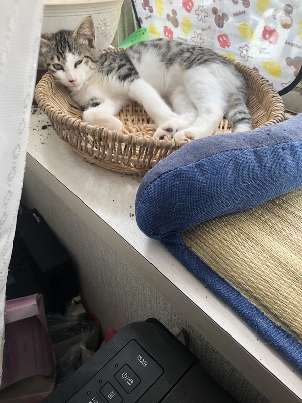 | 里親募集する理由 | 自宅付近の野良猫から4月末頃に産まれました。 この付近は野良猫が多い地域で地域猫も沢山いましたが、ある時一斉に駆除されたり、妊娠中のメス猫の腹部に針金が巻かれたりする事件がおき、犯人が捕まっていません。 この子の兄弟猫も行方不明になっており、命の危険がある為、保護しました。 我が家には既に保護犬猫たちがいるため、生涯大切に、家族として迎えてくださる里親さんを探しています。 まだあまり人馴れしていないため、根気良く、時間をかけて少しずつ仲良くなってくださる里親様を探しております。 排泄はトイレでちゃんとできます。ペットシートを使用しています。 保護後に1度ノミダニ駆除の薬をつけました。 時期が来たら検査やワクチン、去勢など一からお任せしたいと思います。 よろしくお願い致します。 |
