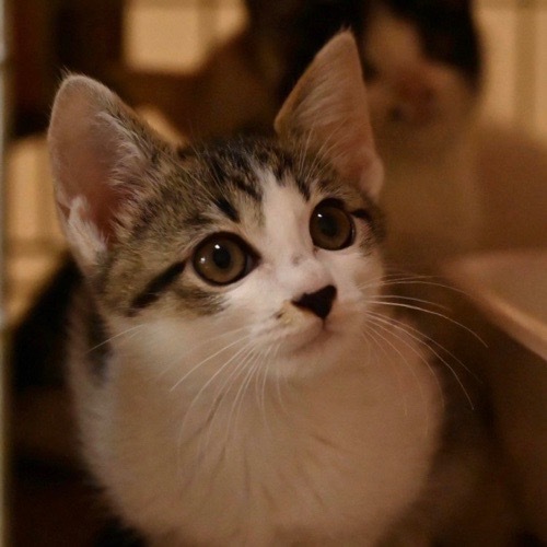 | 特徴(性格など) | なかなか捕まらなかったので、かなりの慎重派・警戒心の強い子かと思っていましたが、、予想を覆し人間大好き、猫も大好き、遊びも大好きとテンション高めのゴロゴロすりすり娘に育ちました。 1か月間小さい体で大人猫に混じり、ほぼ1人でお外生活もしていたので、たくましく協調性もあります。 4兄弟より少し大きいですが、一緒に育ち毎日仲良く暮らしています。 遊びながら、ぴょんと膝に乗ってきたりとても人懐っこく可愛い子です。 |
