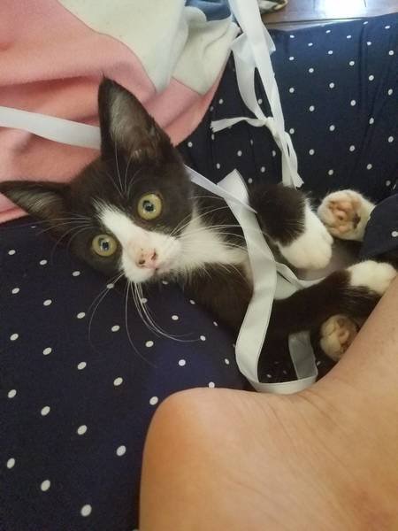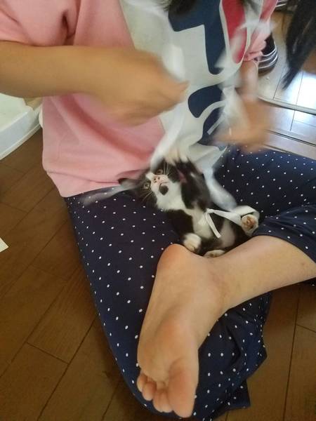 | 特徴(性格など) | 白黒ハチワレ、しっぽ黒長。 仮名 小海老くん(こえちゃん)? 足がすらりと長くハンサムなイケメンさんです。 はじめの一週間は怯えて隠れてしまいましたがいまでは人馴れが進んで抱っこ大好き、構ってほしくて甘えん坊です。 紐で遊んだりボールをちょいちょいやりながら追いかけたりして元気な男の子です。 トイレもすぐに覚えて賢い子です。 甘えん坊なのでたくさん構って遊んであげて欲しいです。 好奇心旺盛で冒険家なので脱走防止に注意が必要です。 |