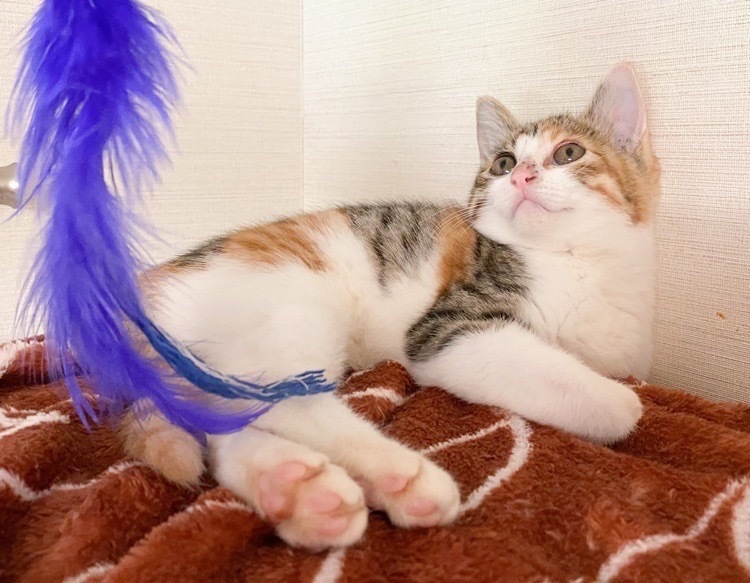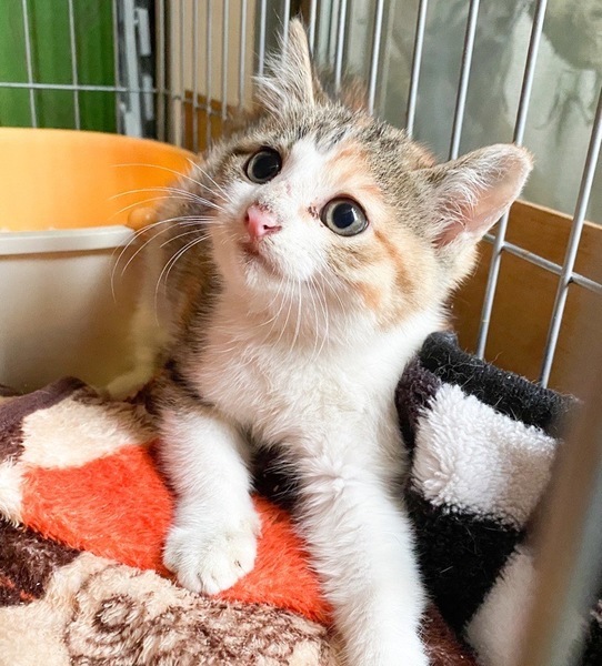 | 特徴(性格など) | もこもこ「パナップ」ちゃん♡ まだまだビビりだけど、好きな場所みつけて、あたちの場所♡なユニーク女のコ♪ じっくり時間をかけて頂ければ、きっと甘えっコになる予感♪ 現在、ドライフードを置き餌として、栄養補給のため、一日2回程度のパウチを与えています。 <推定誕生日:5月始め> |