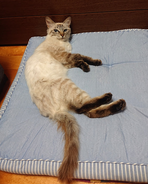| 特徴(性格など) | シャム子(仮) 推定1才になるかならないか♀ 優しいカラーのシャム系MIXです。 半長毛でふわふわの手触りです。まっすぐ尻尾。 まだ痩せていますがふっくらしたら相当美しいはずです。 人間とべったり濃厚な時間を過ごしてくれる猫さんです。 人慣れ抜群。スリスリ強め。抱っこ腕枕OK! |