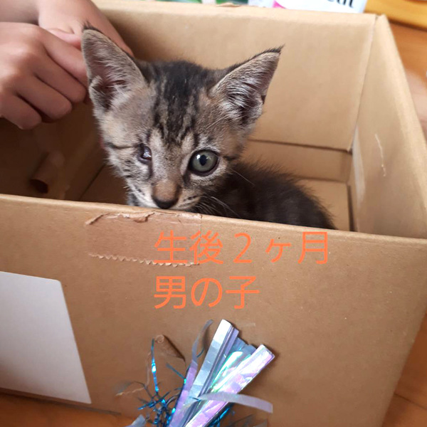 | 里親募集する理由 | 子供が公園でうずくまって動けなくなっている子猫を拾いました。 片目は失明していました。 生後1カ月で150グラムしかなったのですが、生後2か月670グラムになり、体調も落ち着いてきました。 大切にしてくださる新しいご家族を探しています。 |