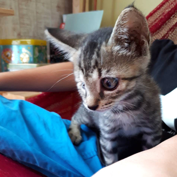 | 特徴(性格など) | かなり甘えん坊でべったりさんのキジトラです。 ワクチン1回接種済み 駆虫済み エイズ白血病検査・陰性 片目は失明しています。特に手術は必要ありませんが、気になるようでしたら去勢手術の際に閉じるか獣医さんに相談してみてください。 |