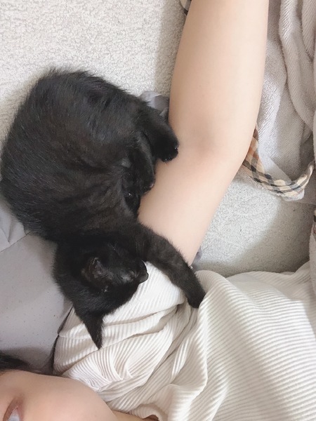 | 特徴(性格など) | 生後2ヶ月の黒猫の女の子です。 人懐っこく甘えん坊で、とっても元気いっぱいです! ご飯ももりもり食べてくれます☺︎ 寂しがり屋なので、構ってあげられなかったら寂しがりますがそれがすごくかわいいです。 |