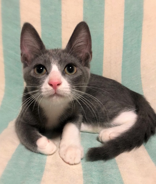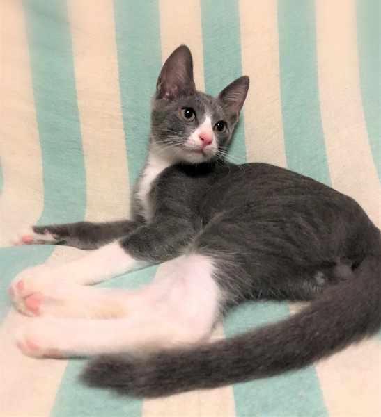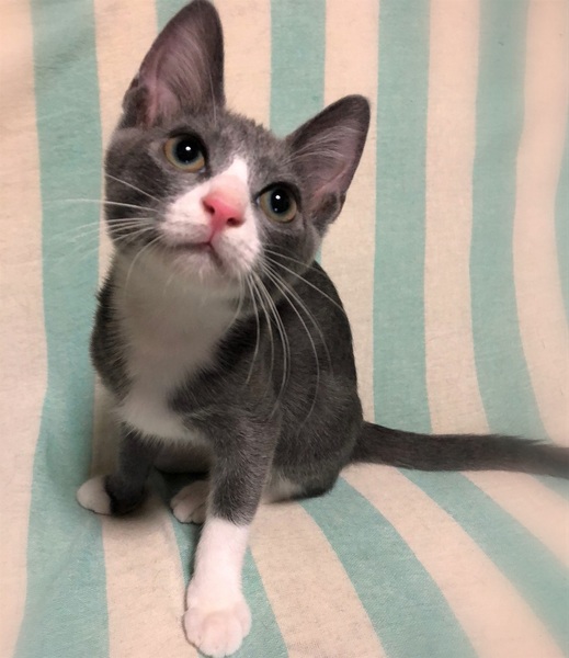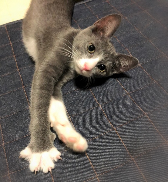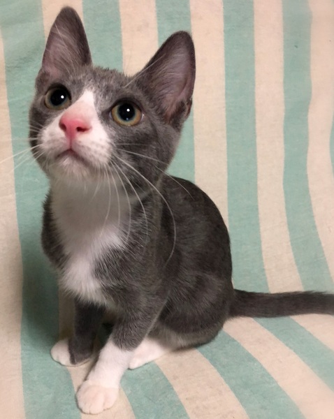 | 特徴(性格など) | 仮名、クリオ 濃いグレー×白はちわれ男の子 環境に慣れるまで数日必要ですが、とても人に慣れていて甘えん坊です。 やんちゃな性格で、オモチャを出すと夢中になって遊びます。 他の保護ねこ達とも良い関係で過ごせる子です。 |