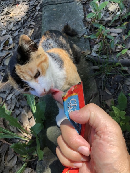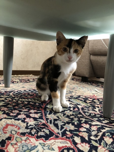 | 特徴(性格など) | 頭と腕に茶トラ模様 頭~背中にかけてインパクトある 黒い模様のハッキリとした三毛猫 シッポはクルリン♪ 個性豊かな派手なルックスなので お部屋の中で探しまわる事がありません。 性格 保護初日は隅っこにいましたが 翌日にはリラックスした様子が見られ 抱っこや膝乗せ爪切りもさせてくれる ようになりました。 お外にいた時も現在も 一人で居る時間が長い為 甘えっ子ちゃんです♡ |