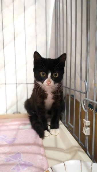 | 特徴(性格など) | いよりちゃんの子供です。 推定2ヶ月の女の子。 ハチワレでお腹の辺りまで白い模様が入ってます。 足先は白模様です。 甘えたさんですぐゴロゴロ言ってくれます。 預かりさんのお宅では大人しく過ごしています。 元気にしています。 エイズ白血病検査、ワクチン接種等は来週を予定しています。 他にも沢山の猫ちゃんを保護しています。 是非見に来て下さい。 |