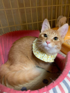 | 特徴(性格など) | 仮名を『わかば』といいます。 TNR現場で保護されました。 茶とらの男の子。半長毛のフサフサ男仔です。 人間に対してはビビリなところがありますが、他猫には趙友好的な平和主義です。 猫同士遊んでいる時が一番楽しそうなので、シェルターで共に暮らす他の仔と二頭一緒か、 フレンドリーな先住猫さんのいるお家がよさそうです。 ビビリなことをご理解いただけて、わかばのペースで見守っていただける方でしたら、 わかばだけに愛情が注がれるひとりっ仔の環境も、悪くないと思っています。 わかばがデレ多めの幸せを知ったら、ストーカーにゃんこになりそうな予感さえします。 仔猫ですから遊ぶ時はパワフルですが、性格は温和で優しい仔です。健康状態良好。 わかばは一度トライアルに出て、里親希望だった方の都合で4日で出戻ってきた経緯があります。 人間の都合で振り回されてしまうことがないように、我こそは!と思われる方からのご応募をお待ちしております。 【医療処置情報】これから実施のも含まれます *健康チェック *3種混合ワクチン接種 (年1回定期的にしております。詳細はお見合い時にお知らせいたします) *ウイルス検査実施(FIV.FeLV共に陰性) *検便実施 *駆虫薬投与(レボリューション、ドロンタール) *マイクロチップ装着 *不妊・去勢手術 |