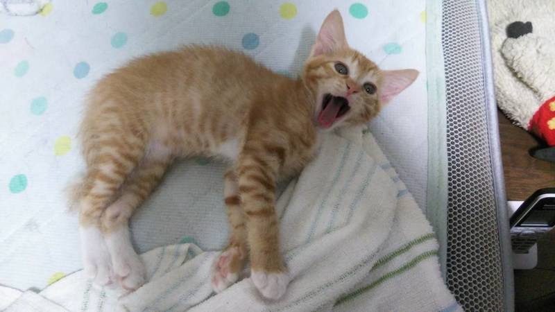 | 特徴(性格など) | 2020.5.25生まれ 毛色:茶トラ カギしっぽで足先が白い茶トラの女の子です。 好奇心旺盛で歩いているとついて来る時もあります。 兄妹で追いかけっこしたり、小さいおもちゃをくわえたり、転がしたりして遊びます。 食べる事も大好きです。 いっぱい遊んでくれるずっとのお家募集中です。 |