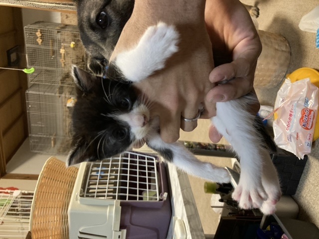| 特徴(性格など) | 白黒のハチワレの男の子です! まだ小さい為確かな性格は分かりませんが人馴れしておりとても甘えん坊です。 |