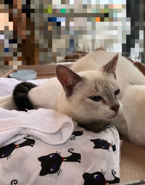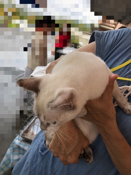| 特徴(性格など) | 身体全体は白、顔、耳、足薄いグレーでとても綺麗な模様な子です。 病院でも6ヶ月以上?との事でした。 身体はとても小さいです。 |