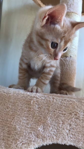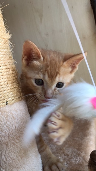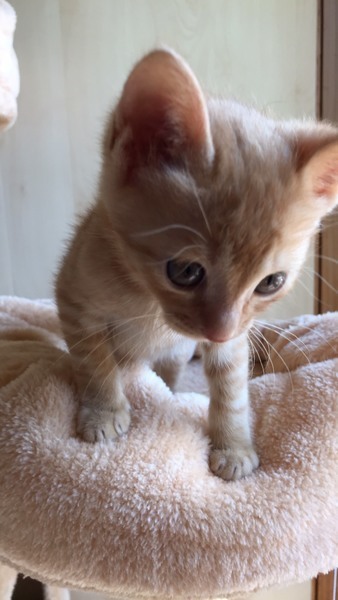 | 特徴(性格など) | 【見た目】 綺麗な茶トラの男の子 おめめはまだキトゥンブルーです。 しっぽはかぎしっぽ。 怪我や病気もなく、元気いっぱいです。 【性格】 甘えん坊で、人間が大好き。 触ると直ぐにゴロゴロと喉を鳴らします。 抱っこされても大人しく、甘えてくれます。 おっとりした大人しい性格です。 先住猫がいても大丈夫。 兄弟でもらってくれたら嬉しいにゃ〜(=^ェ^=) |