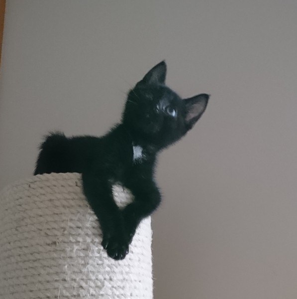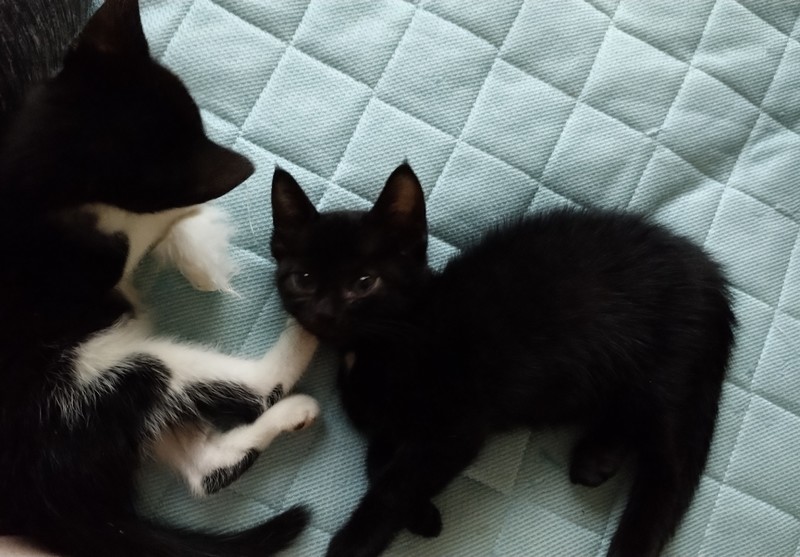 | 特徴(性格など) | ほとんど黒ですが胸に白が入っているかわいい柄の男の子です。 普段ワンパクな様子で遊んでいますが、新しいものや場所に対してはわりと慎重です。 兄弟と一緒に保護しましたので、毎日楽しそうに走り回って遊んでいます。 |