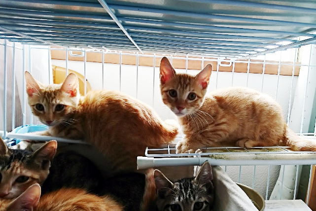 | 特徴(性格など) | 茶トラの男の子。 兄妹猫のうちの1匹です。(※写真2~4枚目は右側の茶トラがこの子です) 兄妹とても仲が良く、一緒に遊んで寝て元気いっぱいです。 人見知りもするので最初はシャーッと言ってしまうこともありますが、慣れるととってもかわいいです♪ 慣れるまで時間がかかる場合でも長い目で見て接してくださる優しい里親さん、探しています。 1匹での譲渡ももちろん可能ですが、兄妹一緒に引き取って頂ける方、大歓迎です。 ※このサイトのシステム上の関係で生年月日を設定していますが、実際ははっきりとした日付は不明です |