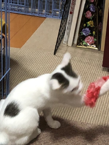 | 里親募集する理由 | ペット不可の賃貸マンションに住む小学生達が9月上旬の暑い日、下校中に人懐っこい子猫を拾ってきました マンションの住人たちがどうするか相談したのですが、保健所に連れて行くのもしのびなく、マンションの自治会副会長の友人がどうしたらいいか?と保護猫を飼っている私に相談してくれました しかし、私も3匹保護猫を飼っており引き取る事は出来ません 保護活動をしている友人が2ヶ月間、預かってくれて風邪を治してくれました 今は、我が家にいます 多くの人がこの子を助けたい 幸せになってもらいたいと動きました 元気いっぱいです どうか、この子の里親になってくださる心優しい方を待っています |