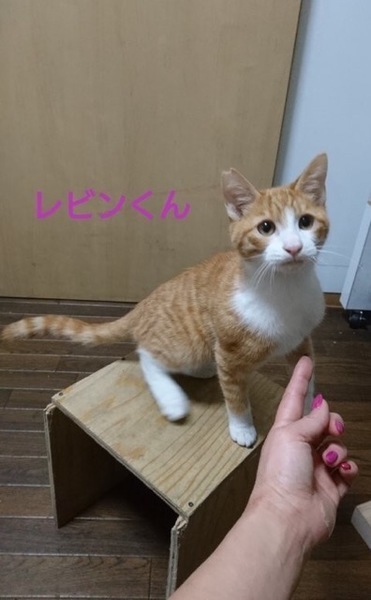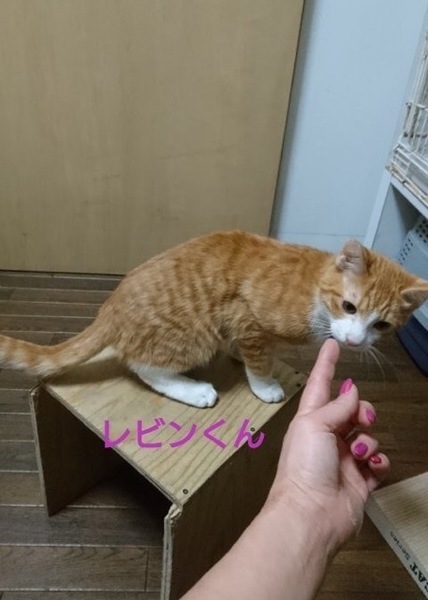 | 特徴(性格など) | 仮名「レビンくん」 ワクチン済み、駆虫済み、ウイルス検査白血病、エイズ共に陰性 茶白の男の子 人懐っこくおとなしい性格です。 甘えん坊で遊び好きな子です。 ただ、先天的に腎臓が悪いです。 現在も投薬と補液と処方食を行っています。 本人はいたって元気で、よく遊びますし食欲もあります。 今後も投薬、処方食は続けていかなくてはなりませんし寿命もとても長くとはいかないかもしれません。 しかし保護出来なければ確実に今こうして元気でいる姿は見る事は出来なかったと思います。 なので家族を作って楽しい幸せな時間を過ごして欲しいと願っています。 病気というリスクはありますが、性格はとてもいい可愛い子です。 |