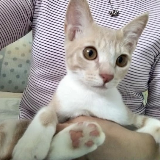 | 里親募集する理由 | 都内某所にて在勤者の方の相談で保護した子猫4匹です。父猫が同じ、母猫が違う三兄妹とひとりっ子ですが2匹ずつペアで預かりボランティアさんのお宅で家猫修行をしました。 元々とても美猫さんたちですが、 預かりボランティアさんの愛情のおかげで表情もリラックスしてとても甘えるようになりました。 どちらの預かり家庭も来客が多いおうちではないのでお見合いや譲渡会ではシャーと言ってしまうと思いますが、ゆっくり待ってくだされば新しいお家でも甘えん坊さんになるはずです。 |